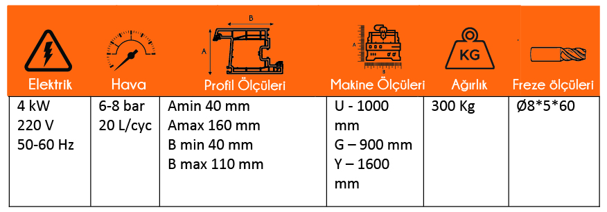 - Pnömatik profil sıkma sistemi