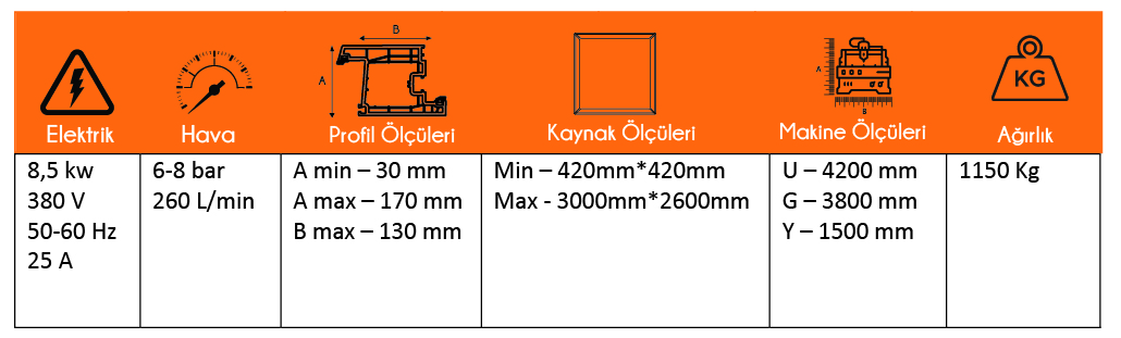 - Beyaz ve renkli profilleri 0.2 mm kaynak yapabilme olanağı