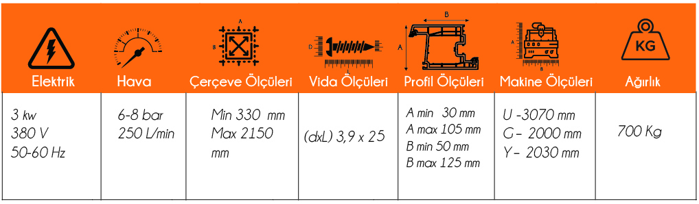 Farklı seri değişik ebatlardaki kapı & pencere kanat profili üzerinde kullanılan tüm çift açılım aksesuarlarını; metre, kalem kullanmadan farklı profillere göre ayarlayarak kalıp ve şablon gerektirmeden, seri, kaliteli ve standart bir şekilde monte edebilme imkanı sağlar.