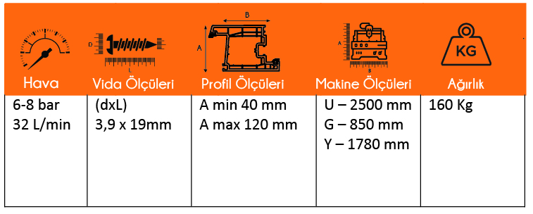 - Ortalama vidalama hızı: 1.7 sn. / 2 adet.