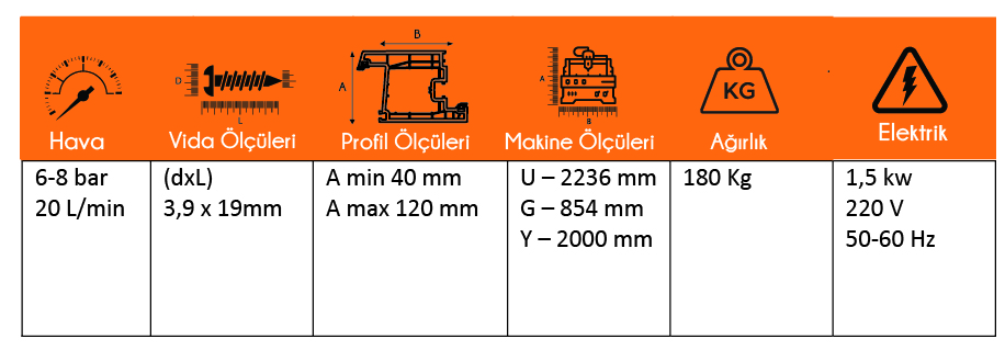 - Matkap motoru üzerindeki özel uç ile profile İçerde Çap: 12 mm , Dışarda Çap: 6 mm olacak şekilde montaj deliğini tek seferde delme özelliği.