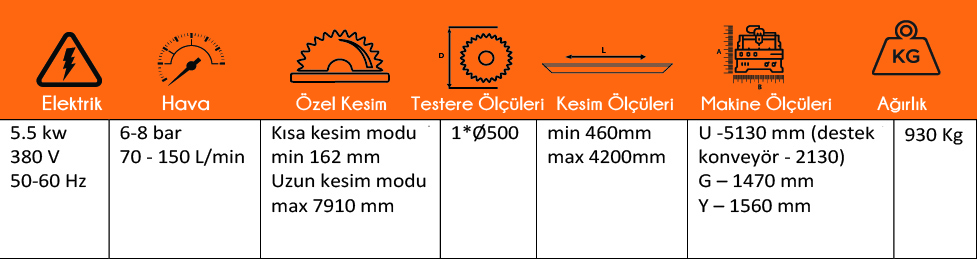 - PVC profil kesim ve işleme merkezinde testere, freze ve tüm delme-markalama işlemleri tek bir makinada toplanmıştır.